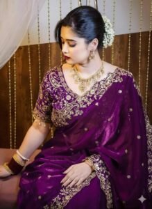 রয়্যাল জিম্মি চু ভেলভেট শাড়ি – জাম কালার